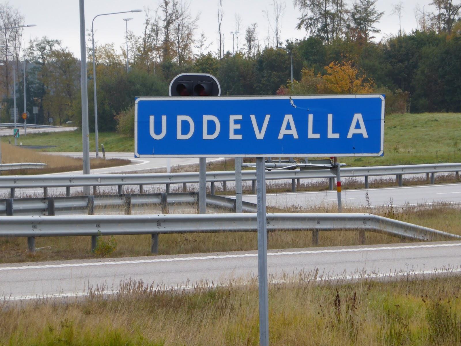 Foto på skylt vid infarten till Uddevalla, när man kommer från köpcentrat Torp som ligger precis utanför staden.